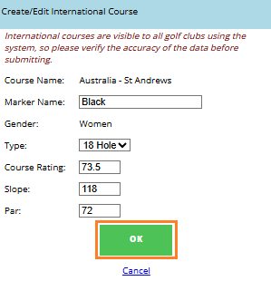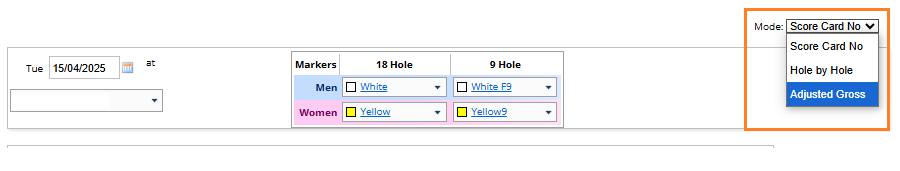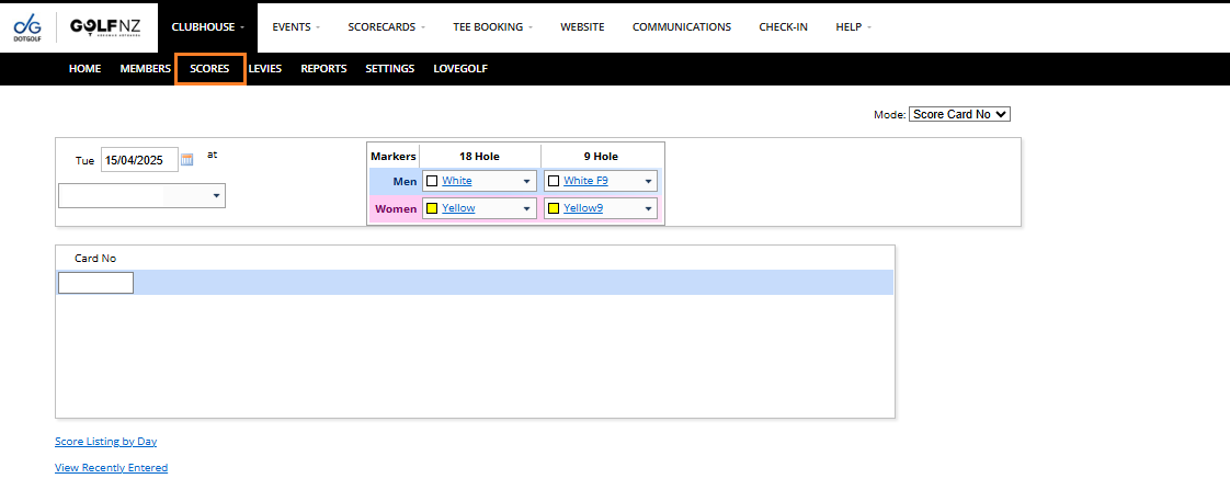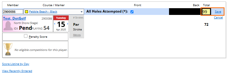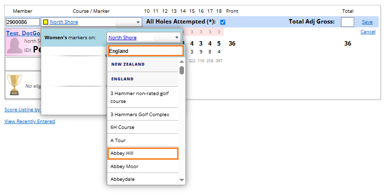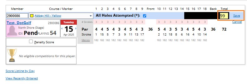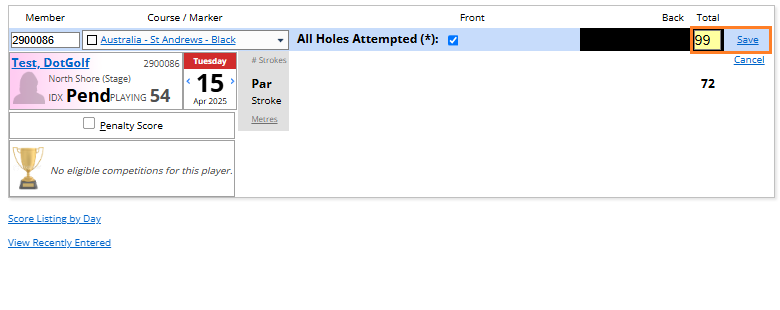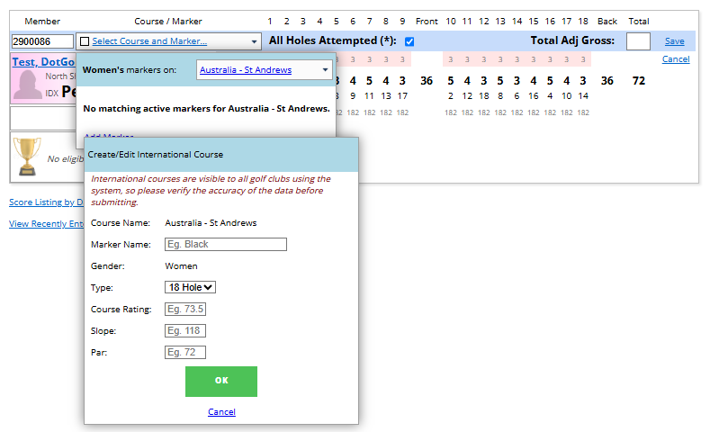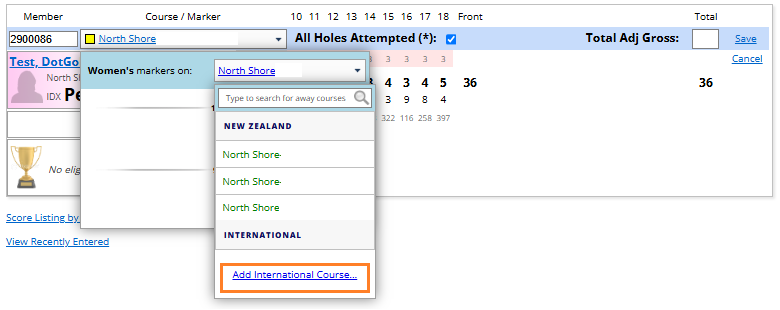 Note: Overseas Scorecards can only be entered in at the Members Home Club.