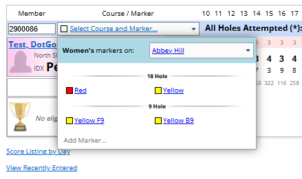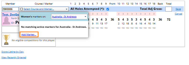 1. After following steps 1 - 7 above and selecting the club that the member played at, select 'Add Marker'.