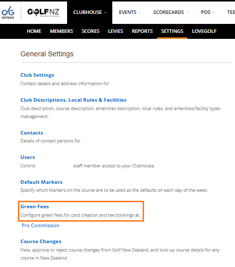5. Based on the answers above, you will then be able to enter the amount per green fee.