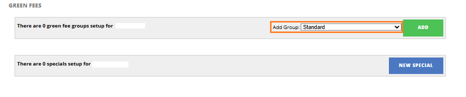 3. Set a name for the Green Fee, for example: Standard Green Fee