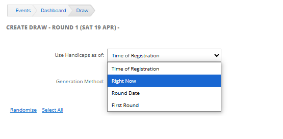 4. If you have chosen Generate 'by Handicap Index', you will be required to enter the following details: