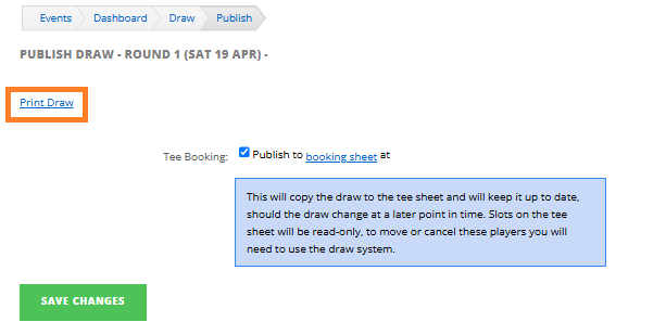1. After creating the draw sheet and adding the players, select Settings under the 'Draw' area in the competition.