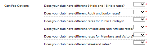 Note: If you want a Flat Rate for Cart Hire, select No for all the following questions.