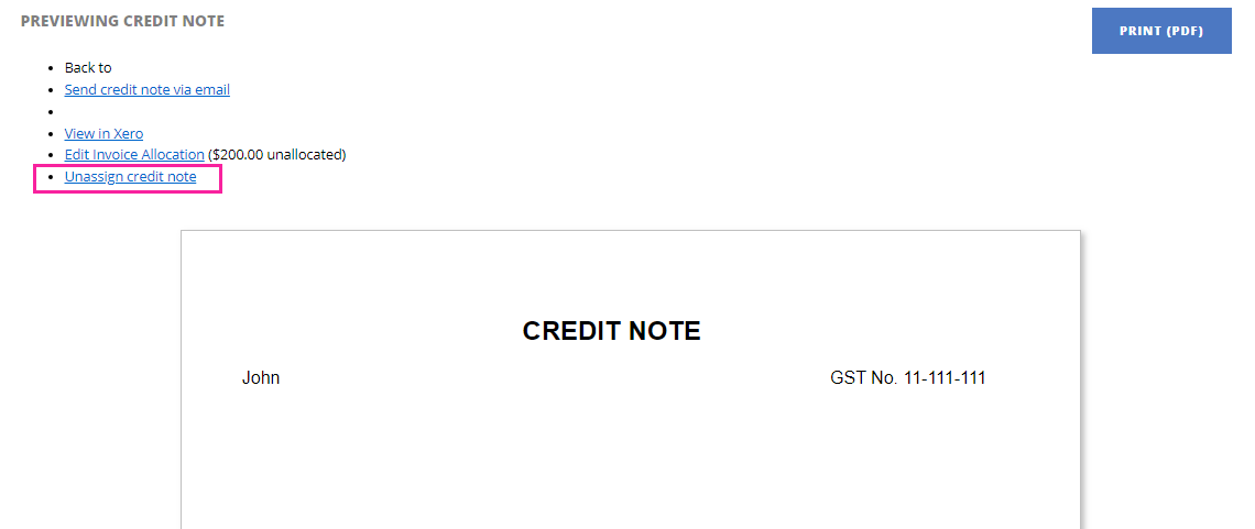 5. You will be automatically redirected to the assign credit note page where you can re-assign the credit note again.